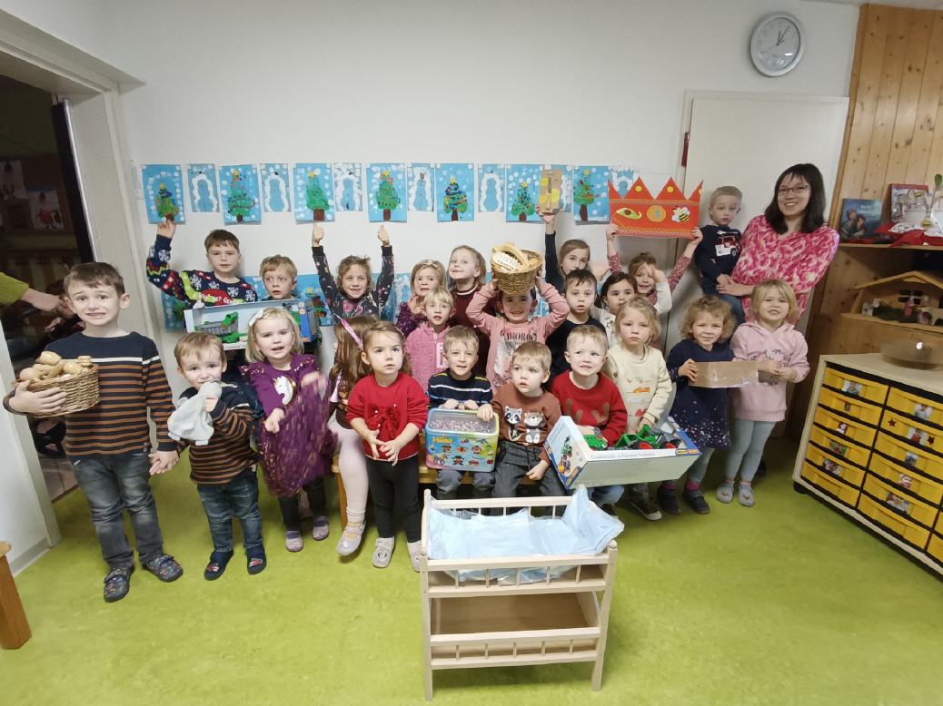 Kurz vor den Weihnachtsferien im Dezember 2024, bekamen die Kinder vom Kindergarten St. Burkardus in Gerichtstetten viele neue Spielsachen.